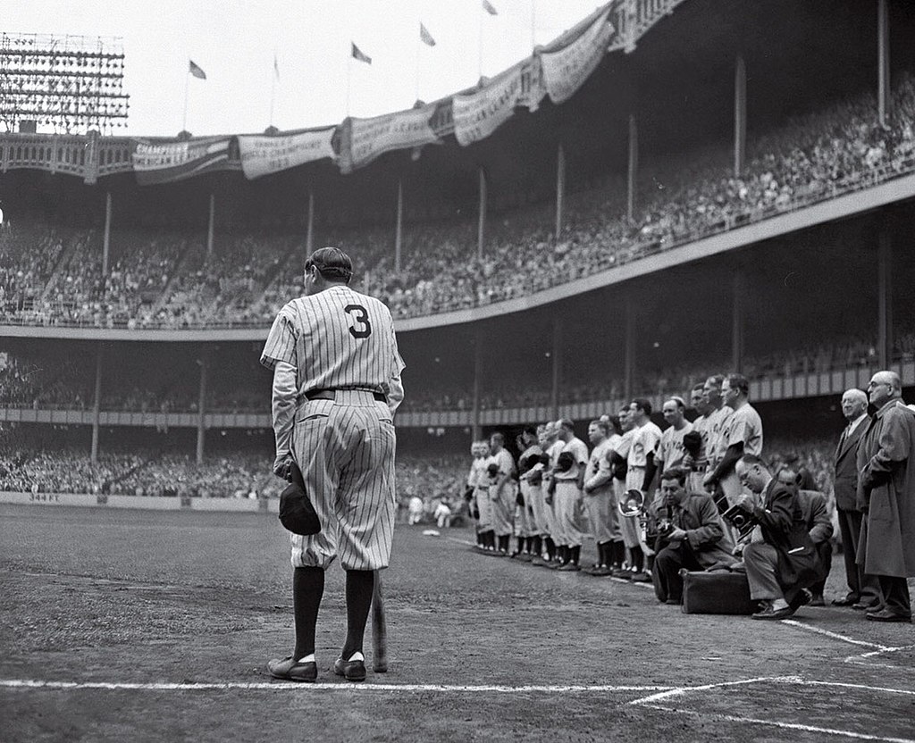 Image: Ruth at Yankee Stadium prior to the Yankees’ retirement of his jersey number. (Wikimedia Commons.)