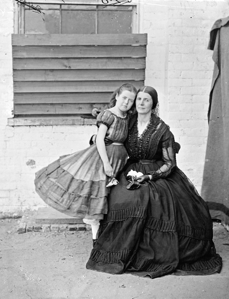 Image: Rose O’Neal Greenhow with her youngest daughter and namesake, “Little” Rose, at the Old Capitol Prison, Washington, D.C., 1862. (Public Domain)