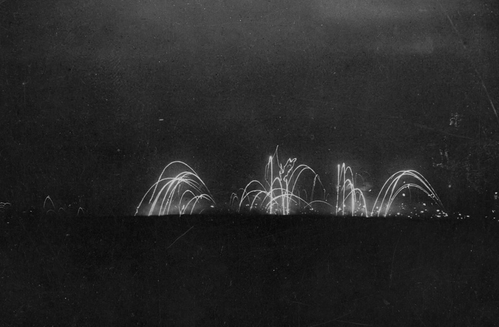 The front in France, a scene on a battlefield at midnight. Opposing armies were sometimes situated in trenches just yards apart from each other.