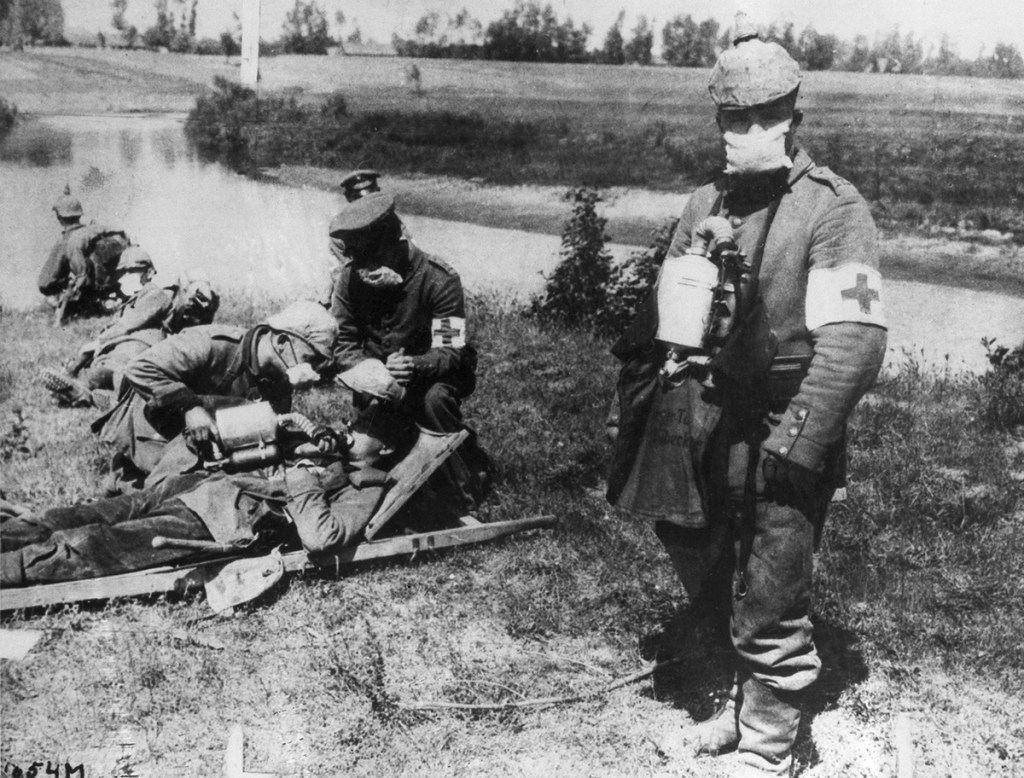 German soldiers flee a gas attack in Flanders, Belgium, in September of 1917. Chemical weapons were a part of the arsenal of World War I armies from the beginning, ranging from irritating tear gases to painful mustard gas, to lethal agents like phosgene and chlorine.