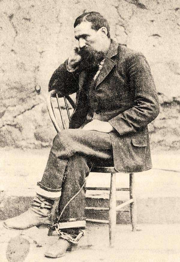 Image: Milt Yarberry shortly before his hanging, while shackled to his chair at the prison in Santa Fe, New Mexico Territory. (Public Domain)