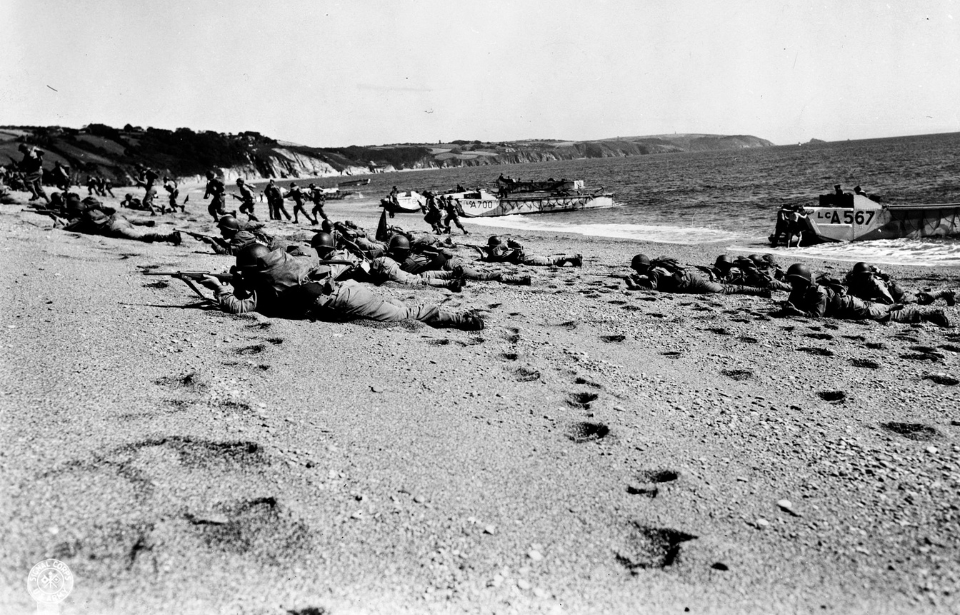 Image: American soldiers on exercise rehearsing on Slapton Sands in Devon, England, in the run-up to D-Day. April 1944.