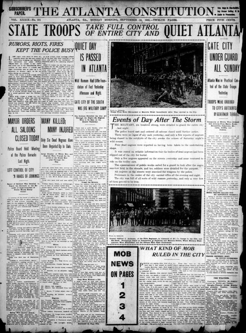 Image: Front page of the September 24, 1906, issue of The Atlanta Constitution.