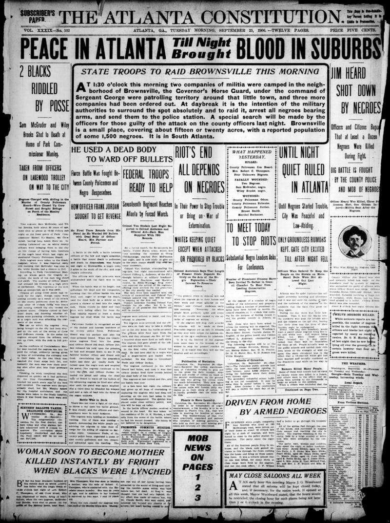 Image: Front page of the September 25, 1906, issue of The Atlanta Constitution.